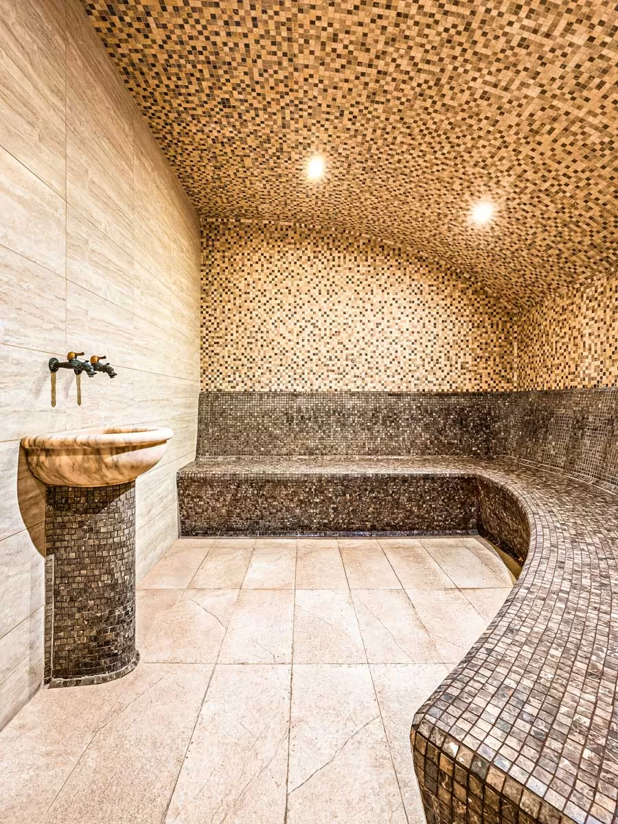 Турецкий хамам отличается невысокой температурой, мягким парением, в помещении играет приятная музыка, царит расслабляющая обстановка.