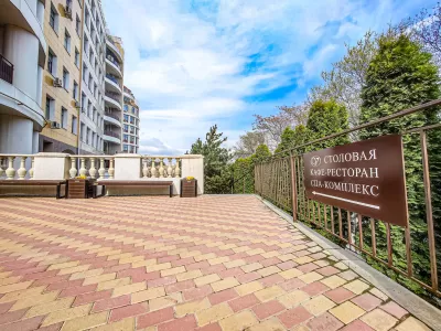 Здесь тихо и уютно. Территория буквально укрыта зелеными насаждениями, имеются красивые клумбы с яркими цветами, экстерьер украшают интересные скульптуры. Предусмотрено множество прекрасных локаций для памятных фото. Территория санатория хорошо освещена вечером. Поэтому здесь приятно совершать прогулки не только днем, но и вечером перед сном.